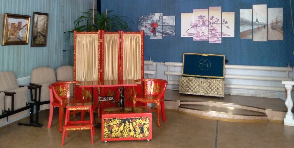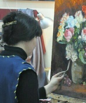 « Районный Центр народной культуры». Работает в различных техниках : роспись по дереву, по ткани ( батик) , масло.