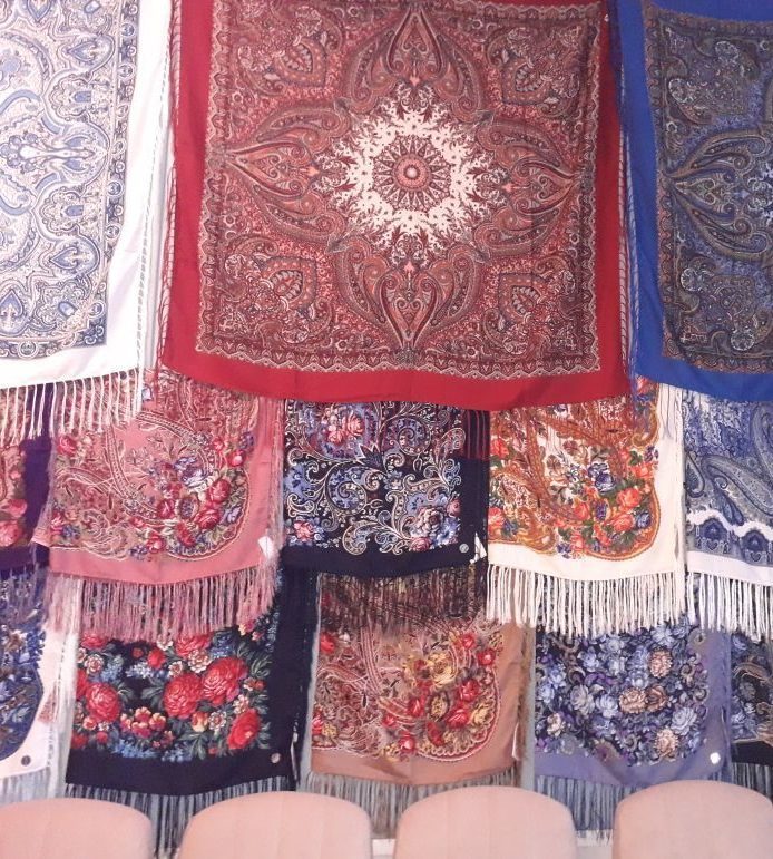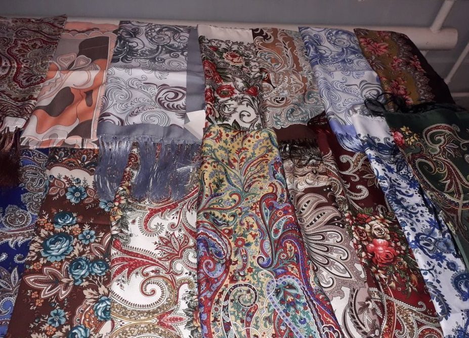 История русского платка уходит своими корнями в 12 век, предшественником которого был убрус, которой представлял собой украшенное белое полотенце из льна. Украшали убрус вышивкой и кружевами. Спустя несколько столетий в 17 веке появился первый платок. Со второй половины 19 века в моду входят ситцевые, парчовые, пуховые и шёлковые набивные платки. На Руси этим предметом одежды покрывали голову лишь замужние женщины, девушка же не имела права носить этот головной убор. Особым достоянием русской культуры стали оренбургские платки из козьего пуха. О них знали даже за границей. Они появились в конце 17 века, а в 19 о них знала вся Европа.