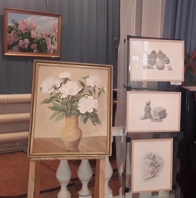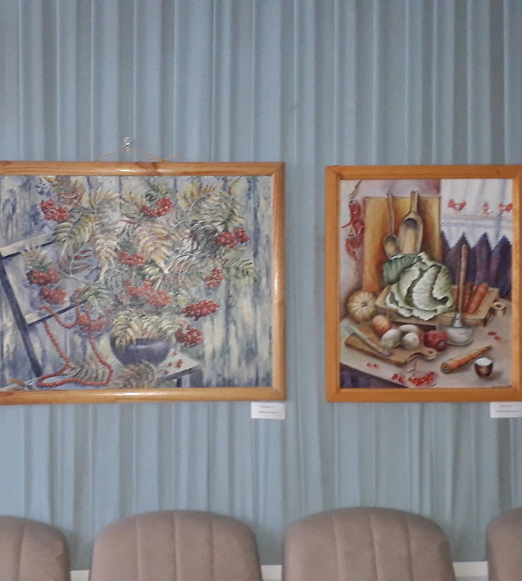 В мини экспозиции были представлены картин художников клуба "Вдохновение», Шарафетдиновой О.Н и Митовой .Ю.А