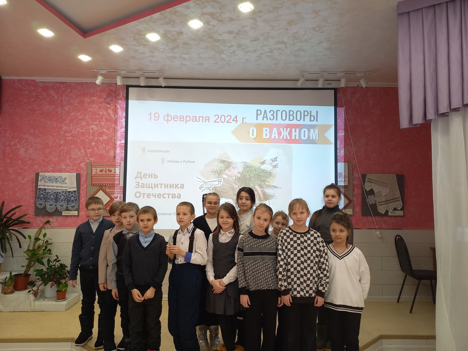 19 февраля в МБУК "Районный Центр народной культуры" Киржачского района для учеников 3"Б" класса МБОУ СОШ №1, прошло информационное мероприятие"Разговоров о важном" посвященное Дню Защитника Отечества. День Защитника Отечества – всенародный праздник, в котором воплощены чувства уважения наших граждан к своим доблестным защитникам, гордости за всех, кто служил и служит в армии и на флоте, признания ихгероических заслуг перед Родиной в отстаивании её национальных интересов, суверенитета и независимости, всеми, кто по заветам предков «Отчизну мужеством прославил». ... Мероприятие прошло в форме познавательной беседы с интерактивными заданиями и просмотром видео о событиях тех лет.Также в ходе мероприятия ребята узнали историю старшего сержанта Николая Масалова спасшего немецкую девочку.