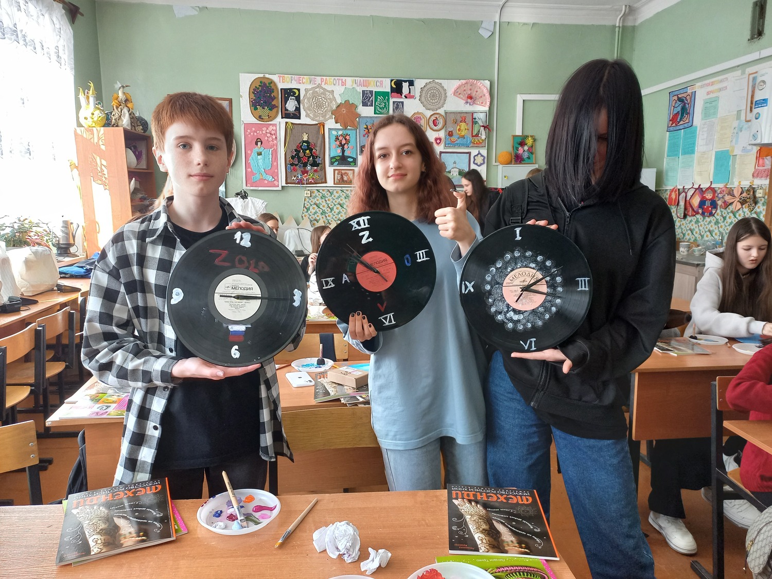 Создание часов из виниловых пластинок – популярный вид рукоделия. Несложно сделать своими руками оригинальные предметы декора, используя трафареты или просто свое воображение. Предмет, вышедший из повседневного обихода, получает вторую жизнь. А участники мастер класса – красивые настенные часы для своего дома или подарка.Мастер-класс по изготовлению "Часов" для учеников МБОУ СОШ №5.Мероприятие проходило по «Пушкинской карте».