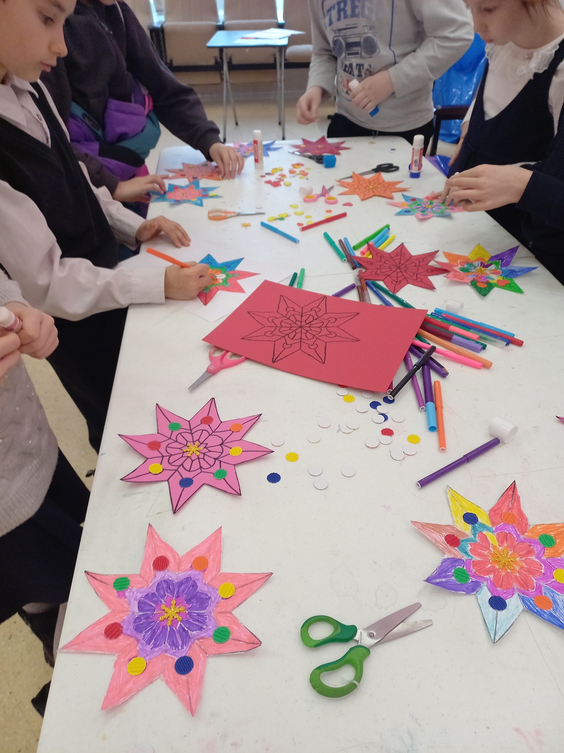 Мастер класс с учениками 3"Б" класса МБОУ СОШ №2 "Колядная звезда"