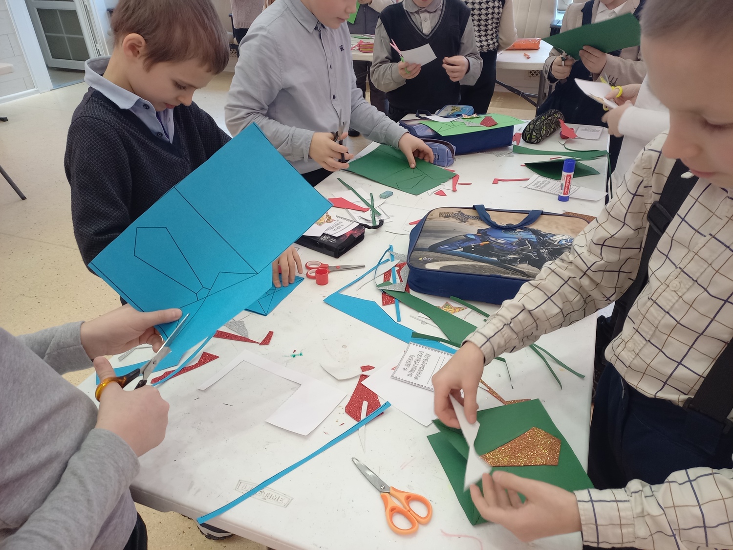 В преддверии праздника День защитника Отечества для учеников 3"Б" класса МБОУ СОШ №1 прошел мастер класс - "Открытка для папы"