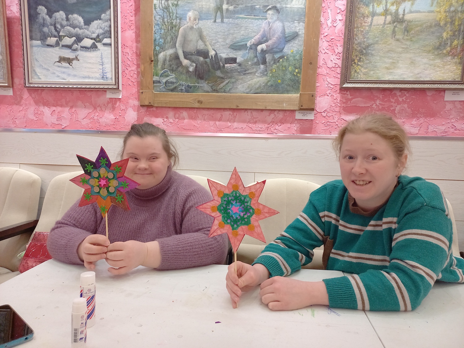 Мастер класс с участниками клуба "Солнце светит всем" " Колядная звезда".